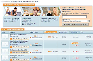 Hier stellt man einen Auftrag ein zu dem Interessenten, die ihn ausführen wollen, ein Gebot abgeben können. Das niedrigste Gebot erhält den Zuschlag.