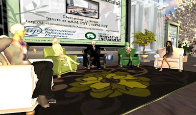 Judy und Barbara von IBM erinnerten auch daran, dass es ja nicht nur um Einsparungen von Geld oder CO2 geht, sondern um qualitative VERBESSERUNGEN der Zusammenarbeit durch die immersiven und sozialen 3D Umgebungen; das können wir aus den Projekten mit TÜV NORD und am 3D Campus Hamburg nur bestätigen. Bill May stellte abschließend fest, dass ein solches Event ohne einen virtual workspace wie SL nur mit einem immens größeren Aufwand möglich gewesen wäre, und natürlich mit einer deutlich schlechteren Ökobilanz. Ich kann hier leider nicht mehr wiedergeben -- es war einfach sehr spannend. Und: Bernhard Drax ( Draxtor Despres in SL ) erstellt eine komprimierte filmische Dokumentation des Events.